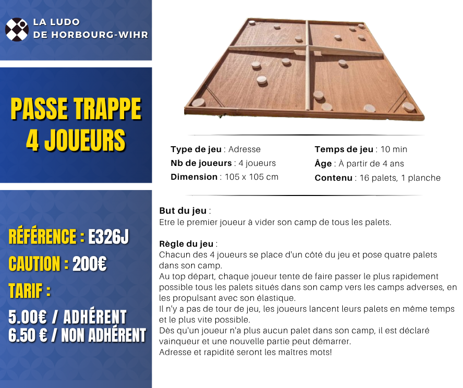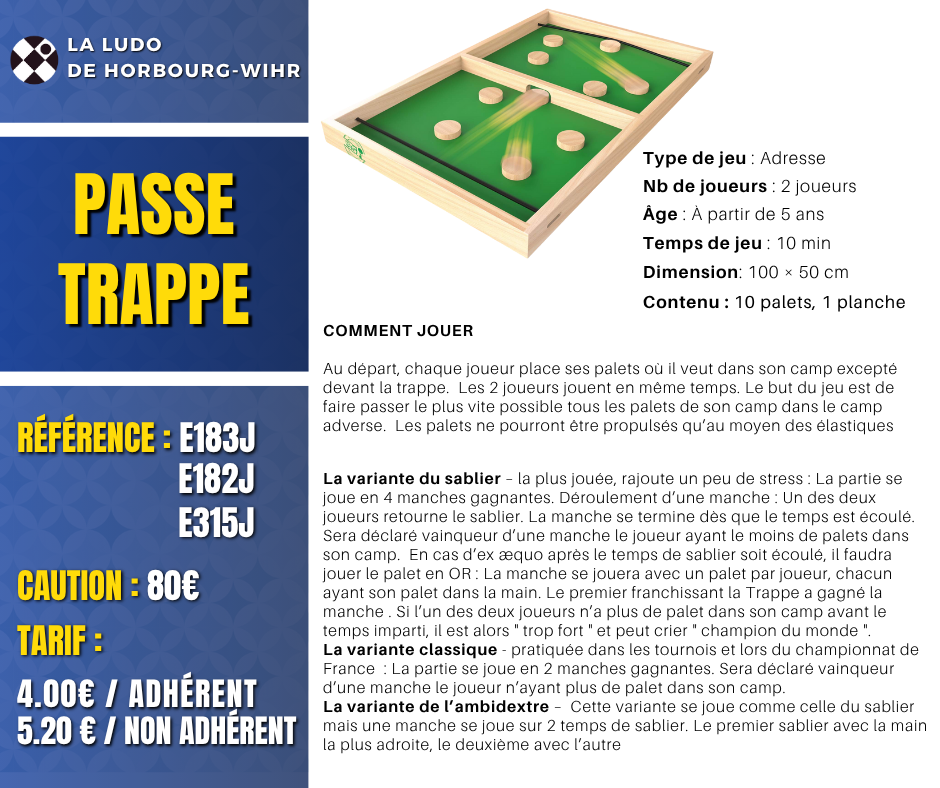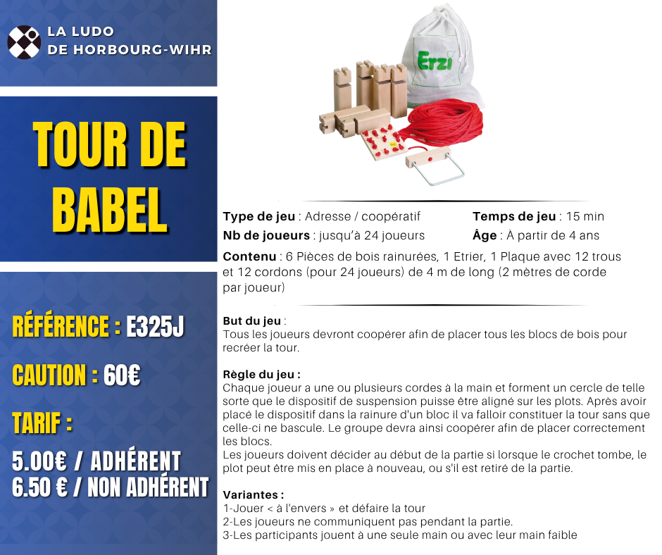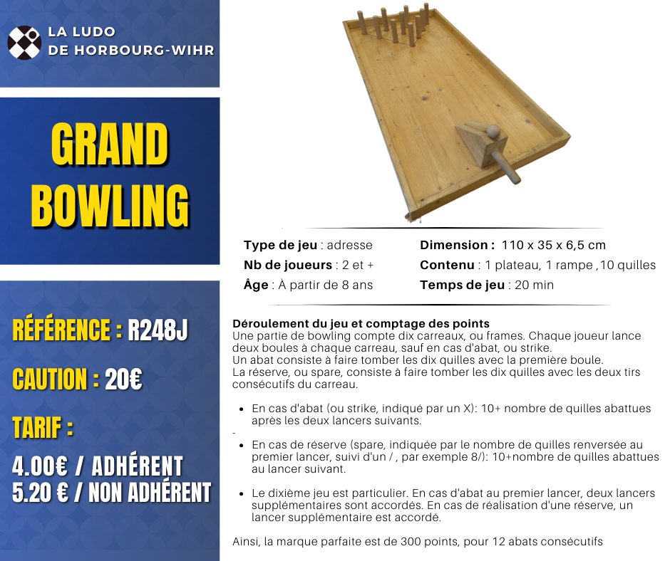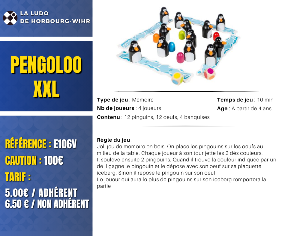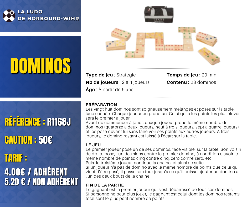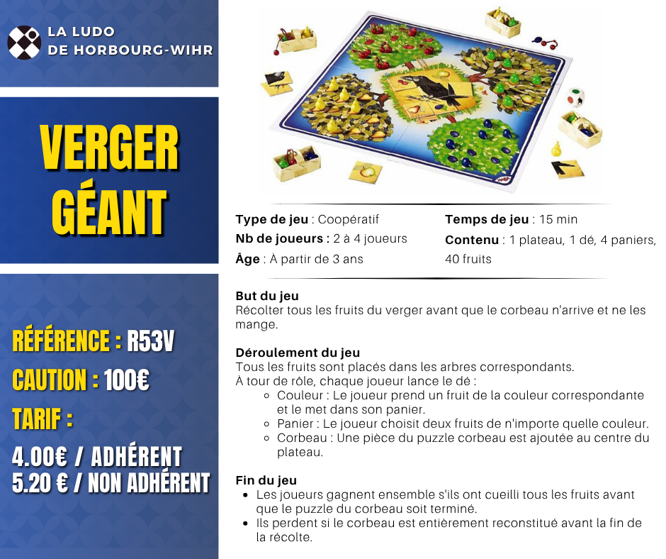 Retrouvez ci-dessous notre catalogue de jeux géants. Pour réserver, il vous suffit de transmettre au ludothécaire, via le formulaire de contact, la liste des jeux souhaités ainsi que la date de réservation.